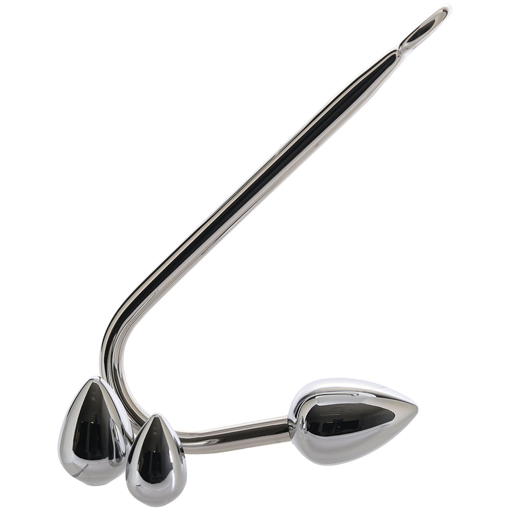 At the tip of a namesake stainless steel hook, you'll screw on one of three tapered aluminum plugs. They run from small to large, with a perfect medium in between. Pick the one you're comfortable with, slather on lots of lube, and play away.