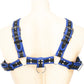 Once you've buckled the fully adjustable Harness over their (or your) neck and chest, two sturdy D-rings are free to connect with leashes, tethers, and all sorts of cuffs. The vegan leather and nickel-free iron Bulldog will soften up to fit your body the more you wear it. Sit and stay!