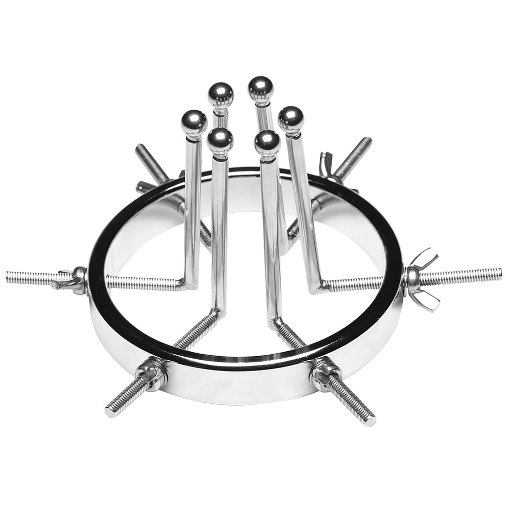 Oculus's center ring secures six spreader bars around the circumference. Once the smooth, rounded tips have been inserted into a butt of choice, you can slowly widen the distance between the bars, dilating the anal opening. What comes next is up to you - remember to use lots of lube and play nice with delicate anal tissues.
