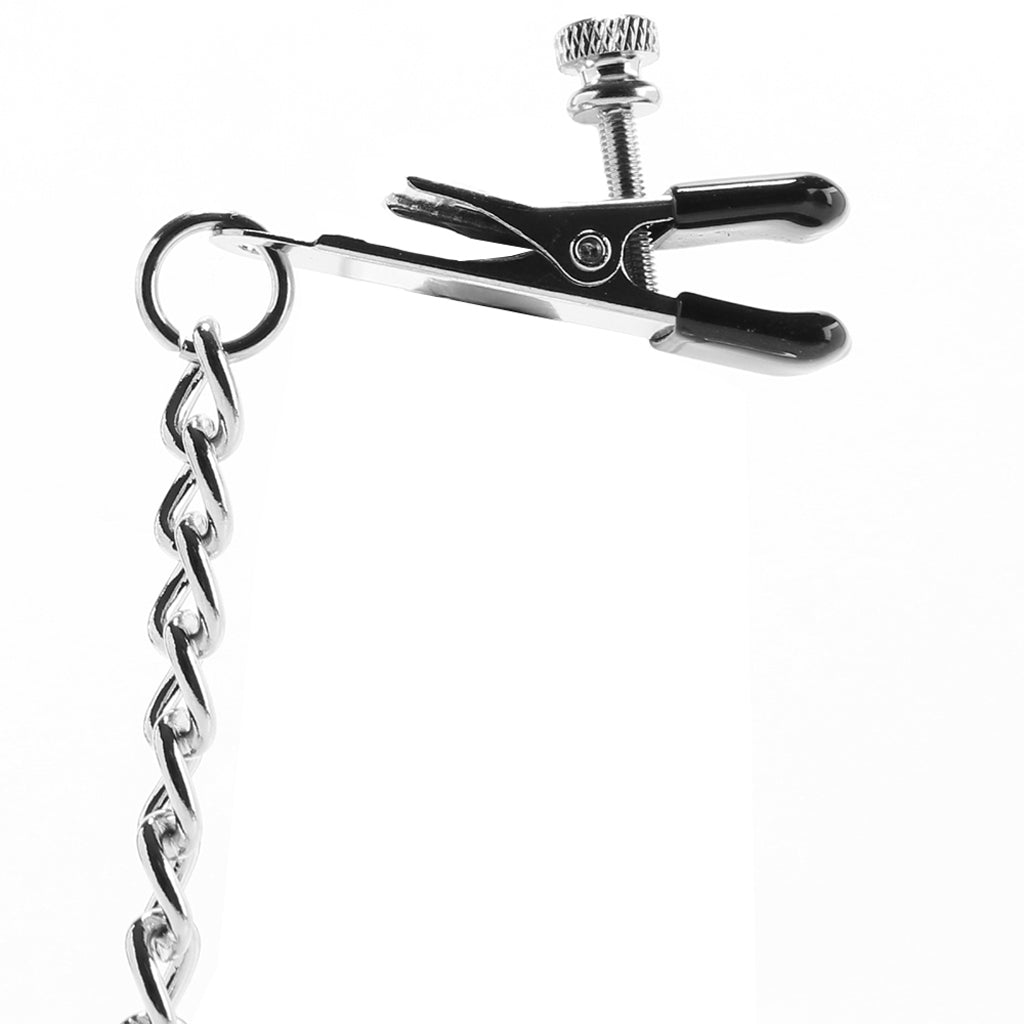 Adding some very sexy weightiness and giving you / your partner something to grab onto, a 12.5" 30.5cm silvery chain links the two clamps. If you'd like a little weight along with your pinch, no problem! There's plenty of room to attach a weight of choice.