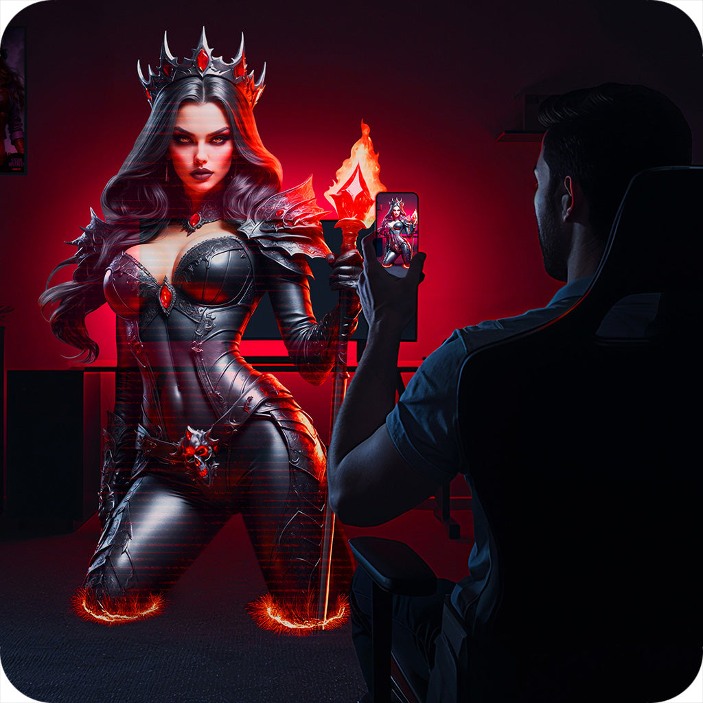 Before you even get started, scan the included QR codes and step into Raven's world. Summon her into your space with Augmented Reality or follow her through a cinematic erotic experience set in the shadowed realm of Noxmere. Twisted woods, black swamps, castle silhouettes. It’s immersive and very extra.