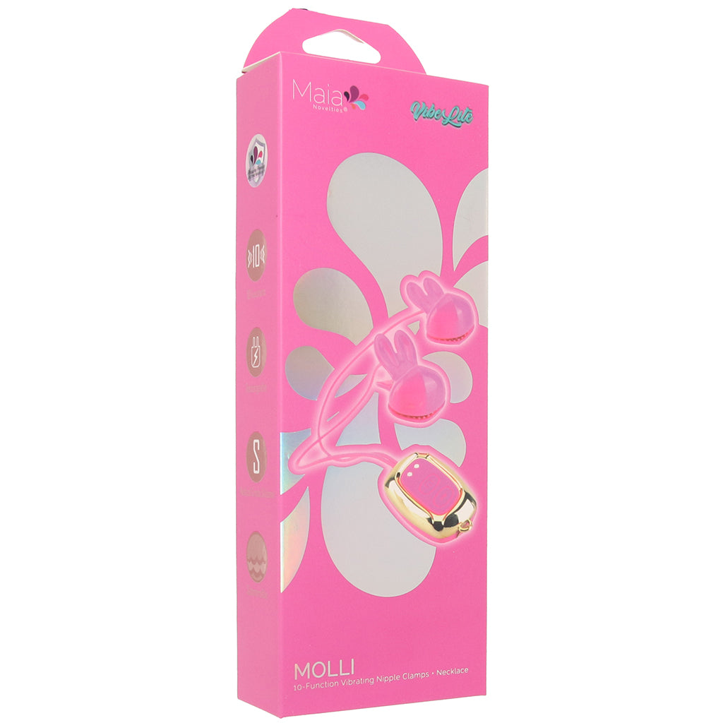 Pinch, buzz, repeat! Maia's Molli Vibrating Nipple Clamps turn your peaks into the star of the show with a mix of sting and tingle that’ll have you begging for more. Slip them on and let silky silicone pads cushion the bite while powerful vibes buzz through every squeeze.