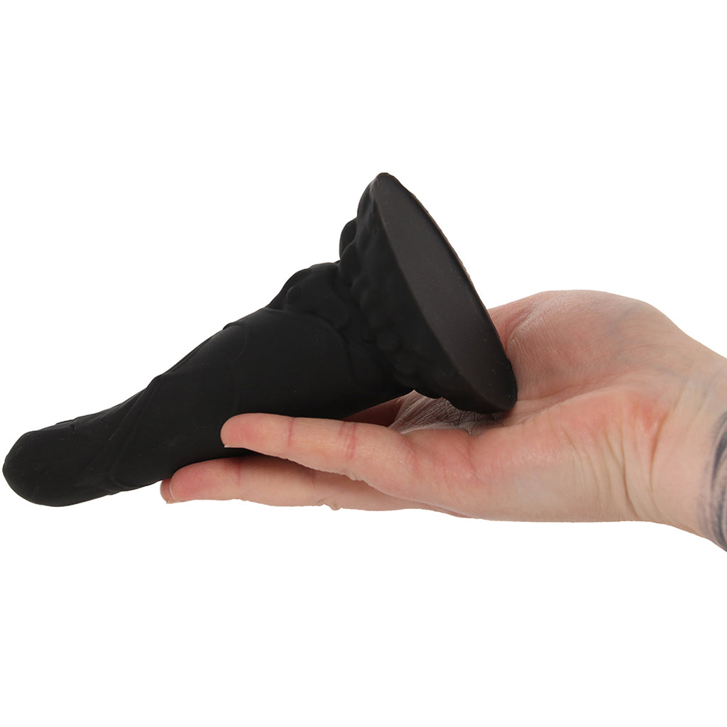This thick, curvy penetrator is sleek up top with some fascinating otherworldly detailing (bats!) and tons of texture below. You can bump and grind it all the way to the wide, butt-safe bottom, or go with just the tip. Either way (and others, too), you can play hands-free thanks to the powerful suction cup base.