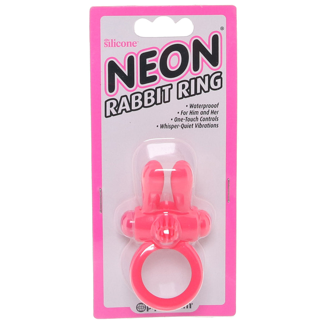 Featuring tickly bunny ears and a sweet-spot targeting texture patch the Neon collection's Rabbit Ring combines a classic erection enhancer with quiet single speed vibration and a convenient waterproof design.