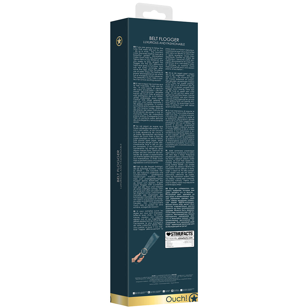 Been dreaming of the perfect spank tool? Wake up! The Halo Belt Flogger from Shots' Ouch! collection has you (and your partner's derriere) completely covered with a very unique take on a beloved bondage play classic.