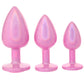 Great for any anal experience level, the Kit includes three shimmery, gem-studded Plugs in Small, Medium and Large. Each features a tapered tip for comfortable stretch, a firm, super-smooth surface, and a flared, gem-studded base. Bend over to flash the glitter!