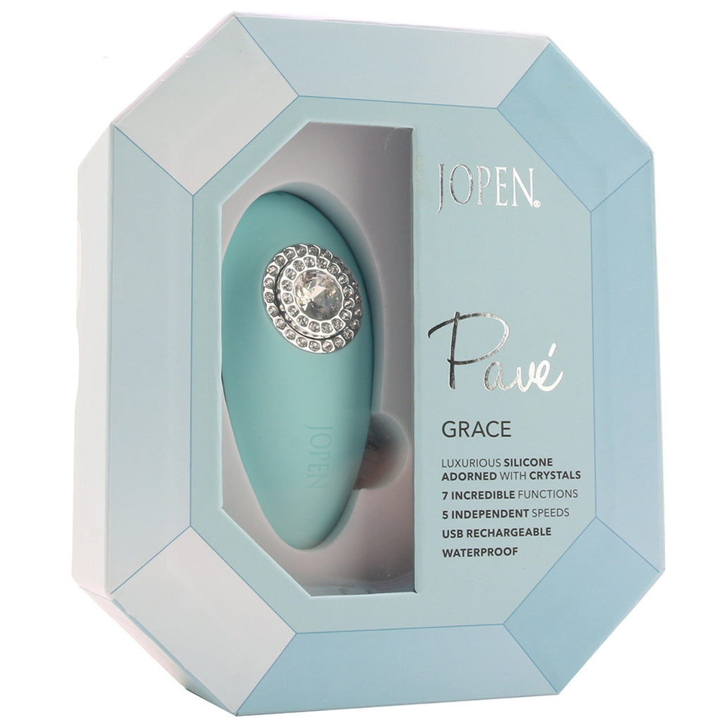Truly beautiful with her cool minty silicone construction and glittery designer crystal controls, Pavé's Grace is much, much more than just a pretty face- she's fantastically functional, too. Featuring a smooth palm-sized shape with curves in all the right places, this discreet little vibe was designed to seek, find and please your sweet spots in almost any position and during just about any act.