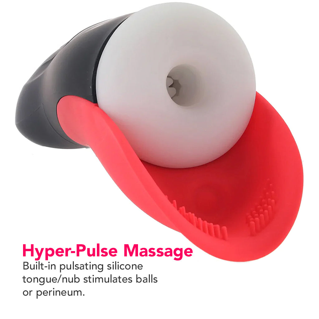 For a hit or two of vibration, press the 'V' button to explore ten built-in modes. Play with the suction feature separately or combine it with vibration - it's up to you. Either way, the super-sized silicone tongue curving up from beneath gives the boys/balls a licking, throbbing ride with a unique Hyper Pulse throbbing nub.