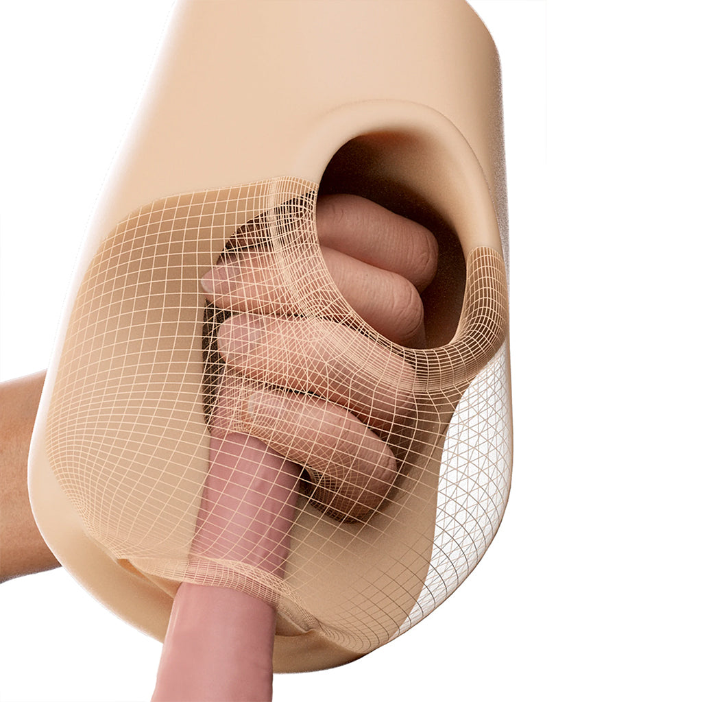 Made from lifelike Fanta Flesh with some VERY realistic details, Pounder's pretty pussy leads the way to a snug, multi-textured tunnel. Alongside, two soft cavities hold your hand(s) for extra control over tightness; squeeze to bring rows of inner nubs closer as you thrust into it.