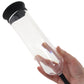 First off, this Pump's clear chamber magnifies your cock (a lot!), so you can track your firming progress in real-time. Slip the included silicone donut sleeve over the entrance for a great seal and comfy cushioning.
