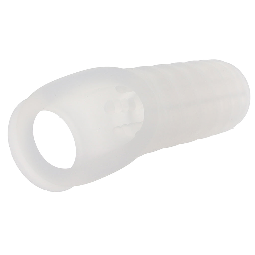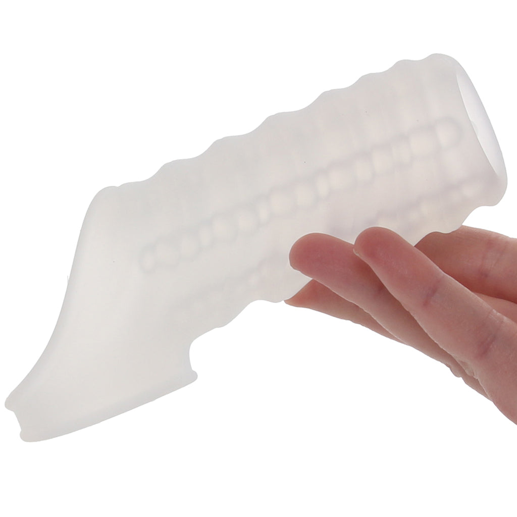 Slip it over a penis or probe, securing a handy bottom ring around your/their scrotum or the base of a dildo/vibe/otherwise. The open-ended design leaves the tip of a penis or toy exposed for maximum sensation while the plushy silicone adds thickness and texture. Flip it to feel the opposite side.