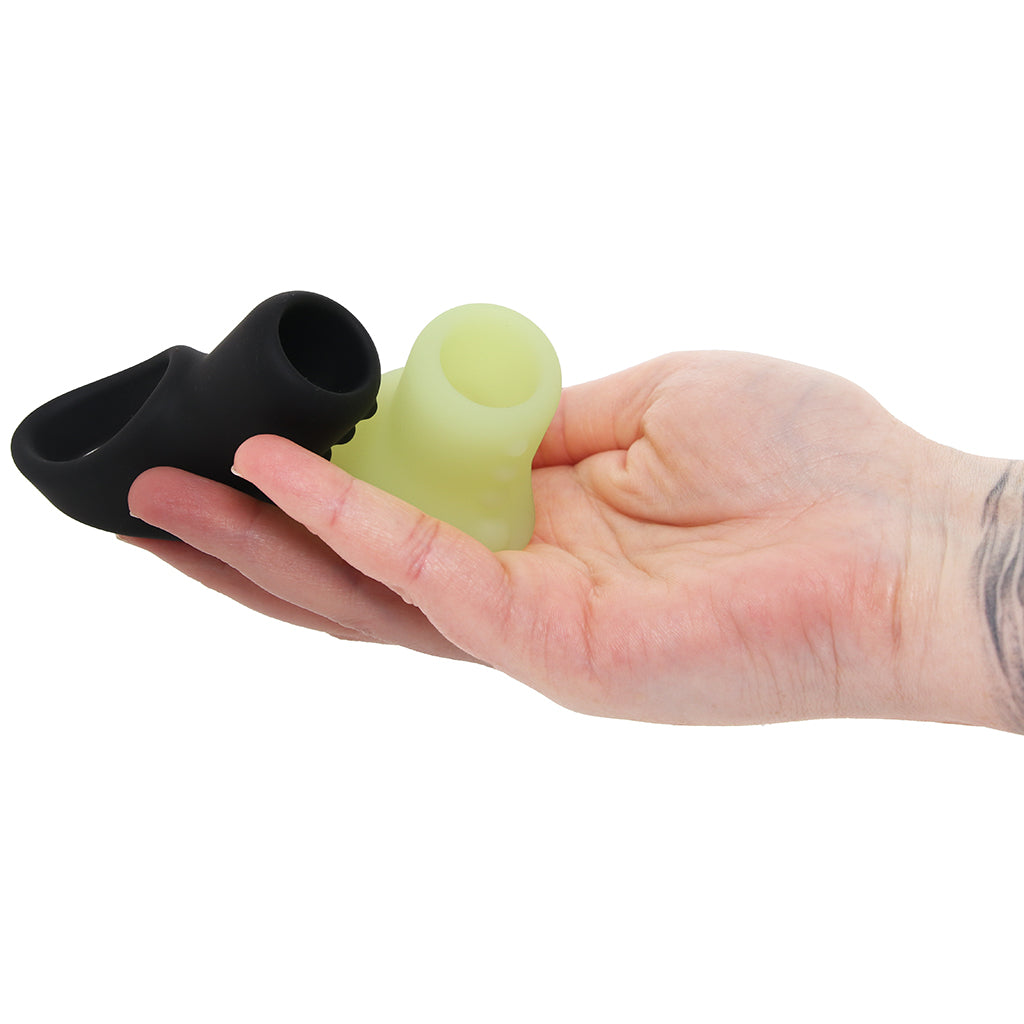 You get two ways to play: one sleek, classic sling for those “all business” moments, and one with a glow-in-the-dark finish for the kind of sessions that feel like a party (even if it’s just a party for two). Wear them solo, with a partner, or slip them over a toy for added thickness, texture, and a little “did it just glow?!” surprise.