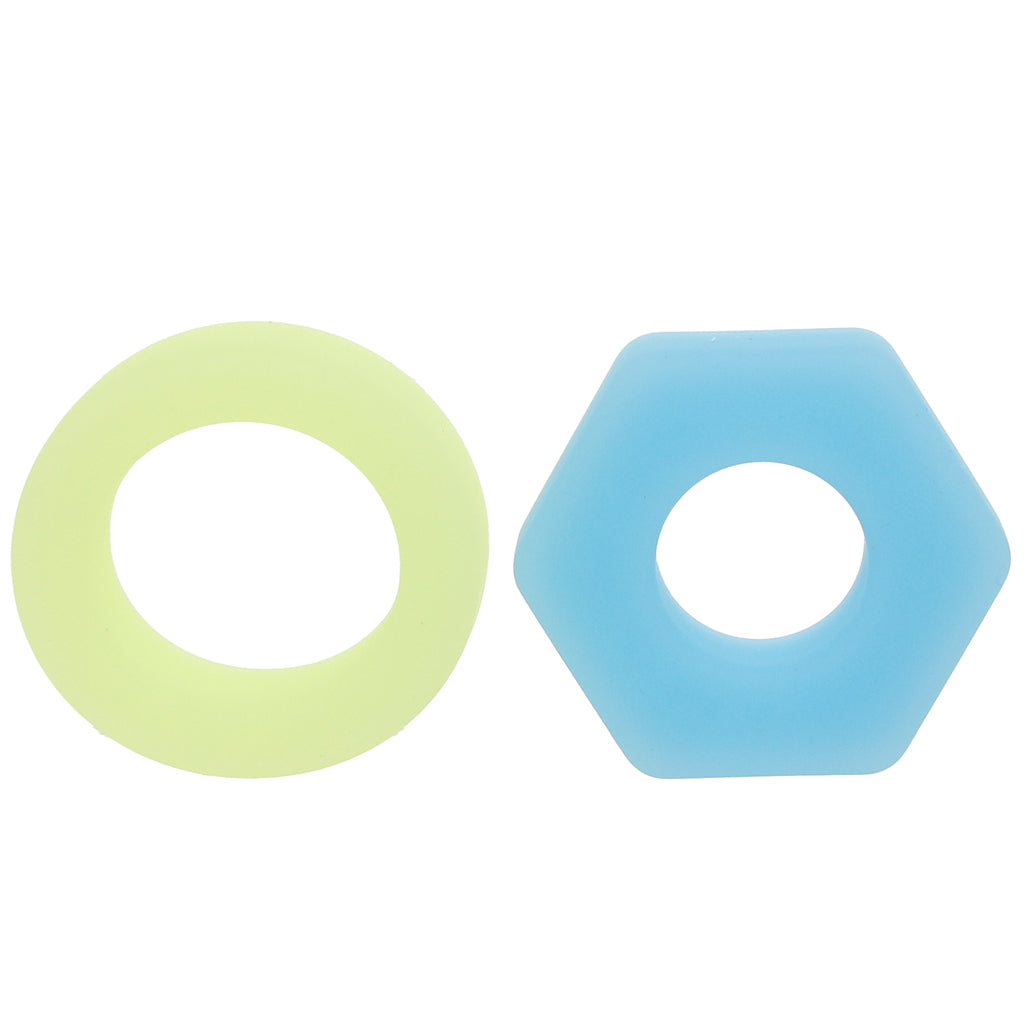This glow-in-the-dark 2-ring set is your ticket to longer play, firmer vibes, and a cheeky visual twist that makes every session a little extra. Pop on one for classic support, double up for more intensity, or slide them over a dildo or strap-on for extra grip and texture. Solo or partnered, lights on or off — Flash keeps you lit.