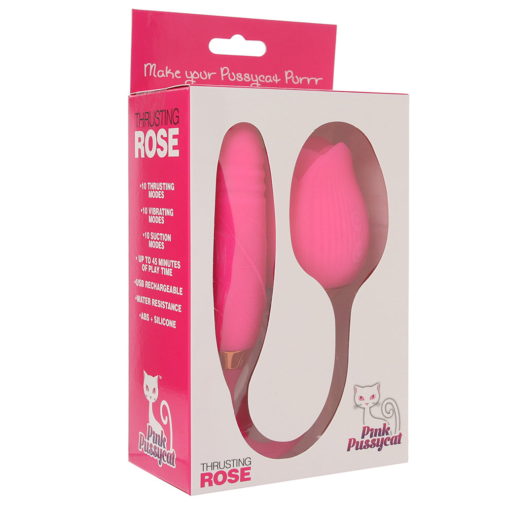 Choosing sides can be tough, especially when each side offers a super-stimulating pleasure possibility to explore. You won't need to make any hard decisions with Pink Pussycat's Thrusting Rose Vibe - you can have both!