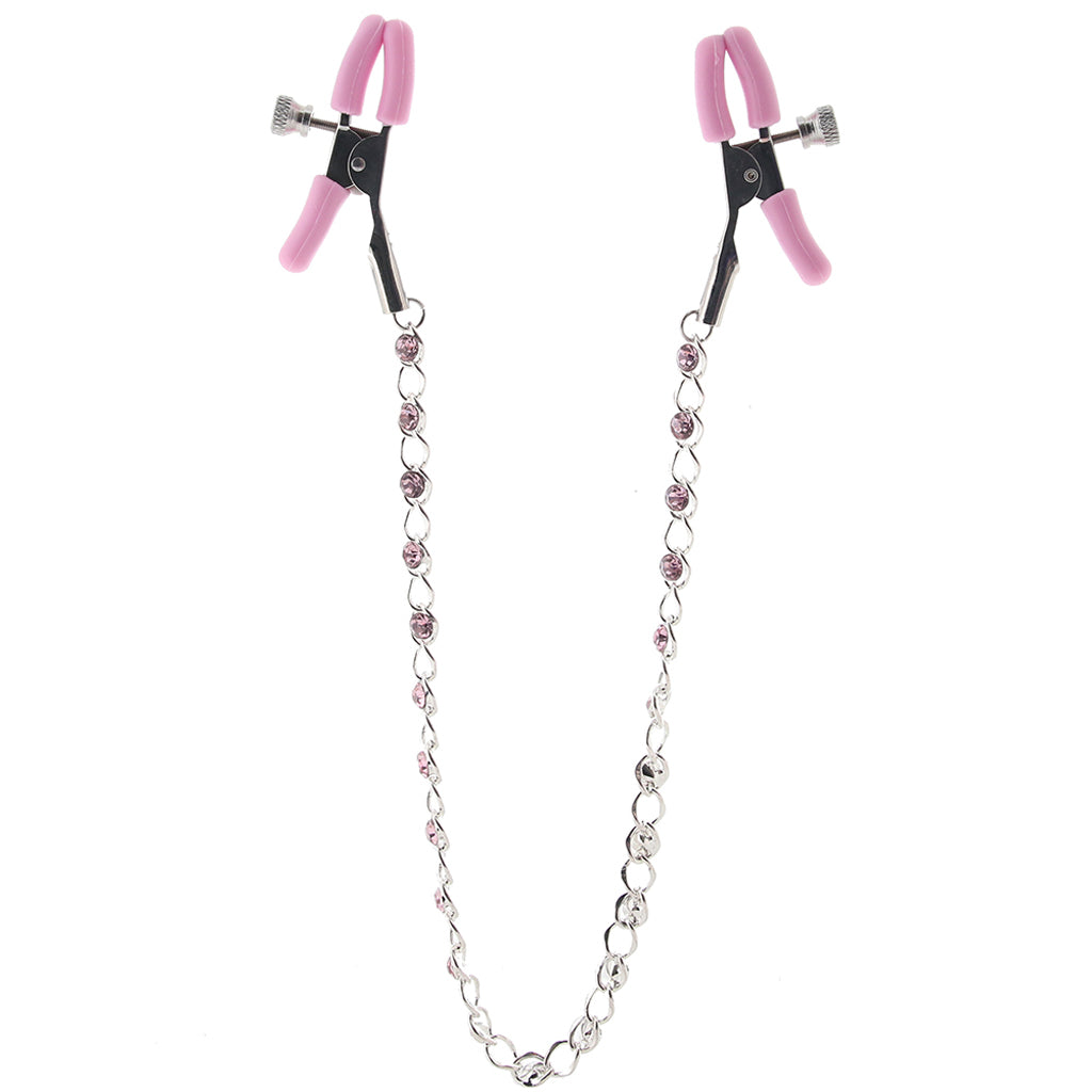 A 12"/30.5cm glittery crystal chain connects the clamps, adding a little sparkle and some playful swing as you move. The extra tug makes things even more interesting.