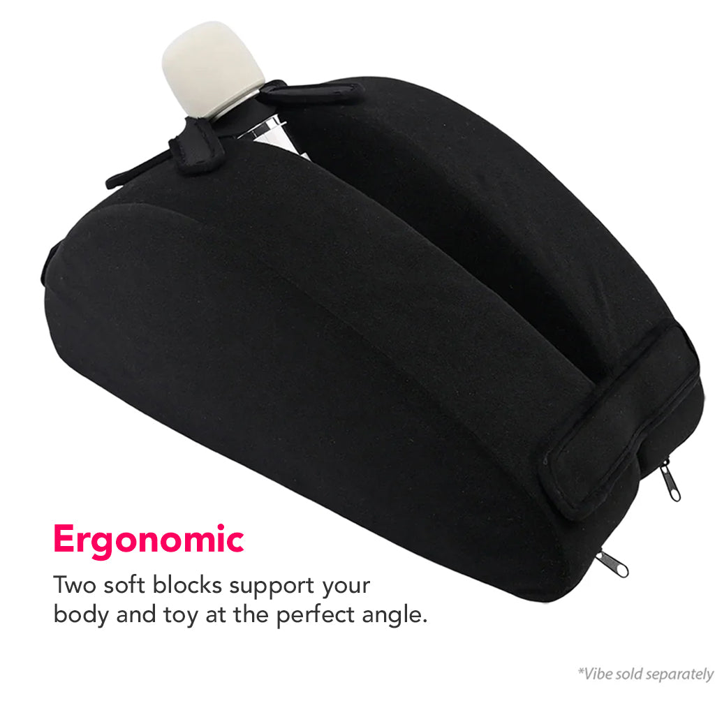 The modular Mount comes in two sturdy, supportive, super-soft foam pieces, one on the left and one on the right. Not only can you use them separately for extra support during sex and foreplay, but they'll also hold tight to your toys when anchored together with hook-and-loop straps. Hands-free playtime, anyone??