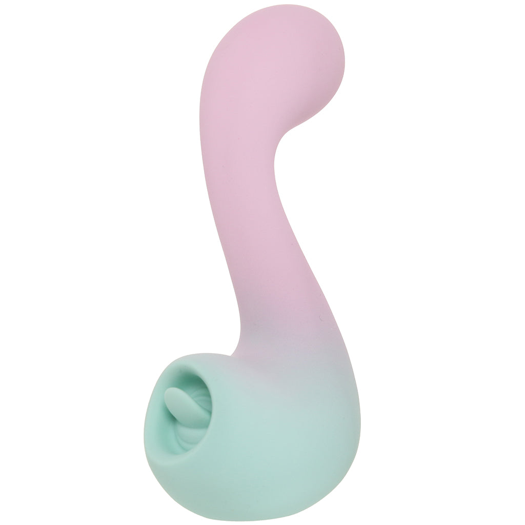 This flexible, dual-ended silicone vibe features a swollen penetrator on one end for G-spot or P-spot stimulation and a fluttering flicker-tongue on the other for clit-focused fun. With 7 rumbly vibration modes per side, you'll have no trouble finding your rhythm.