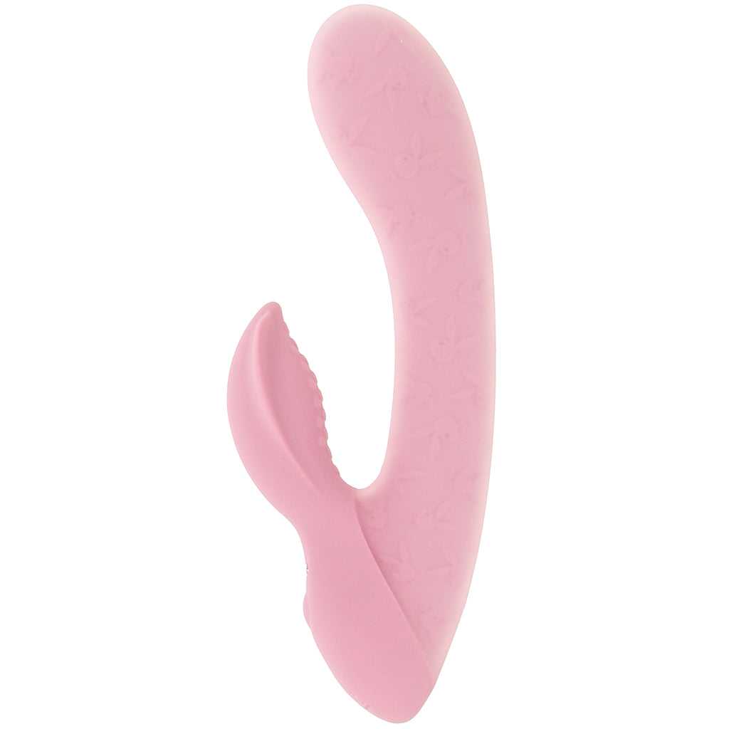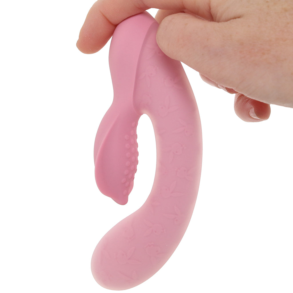 Up top, the (very!) flexible, gently curved shaft is lined with raised Playboy bunny heads that tease and tickle with every move, while the dual-layered silicone feels so real you’ll need to remind yourself it’s not. Meanwhile, a petal-shaped stimulator surrounds your clit/outer hot spots and sends those deep, rumbly vibrations right where you want them most.