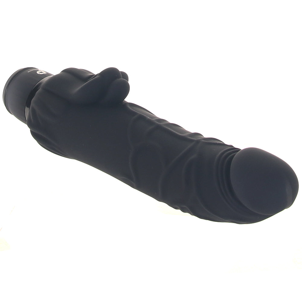 PowerCock 7 Inch Vibe with Clitoral Stimulator in Black