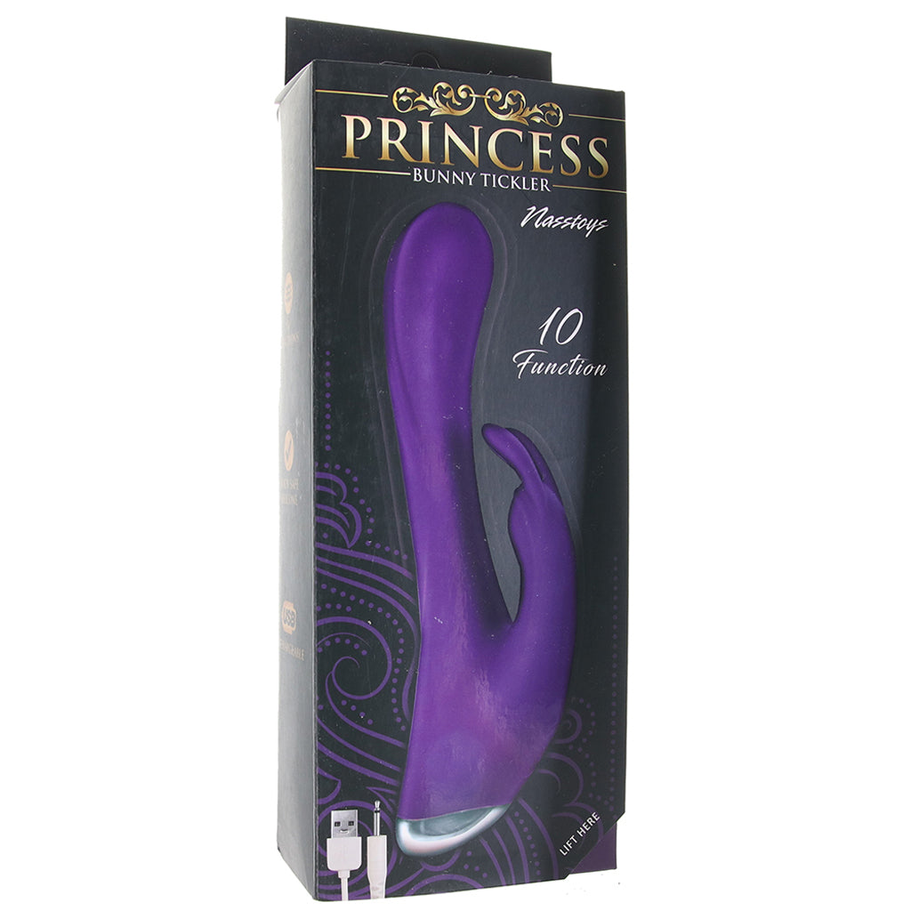 In 100% silicone, the Princess Bunny Tickler Rabbit Vibe is body safe, phthalate free and extra hygienic. Wash well before and after play time using warm soapy water or a good toy care fluid/foam. If you'll be pairing a lube with this vibe, please use a favorite good quality water-based formula. Avoid contact with silicone lubes, and store away from other silicone toys. USB rechargeable. Cord included. Waterproof.