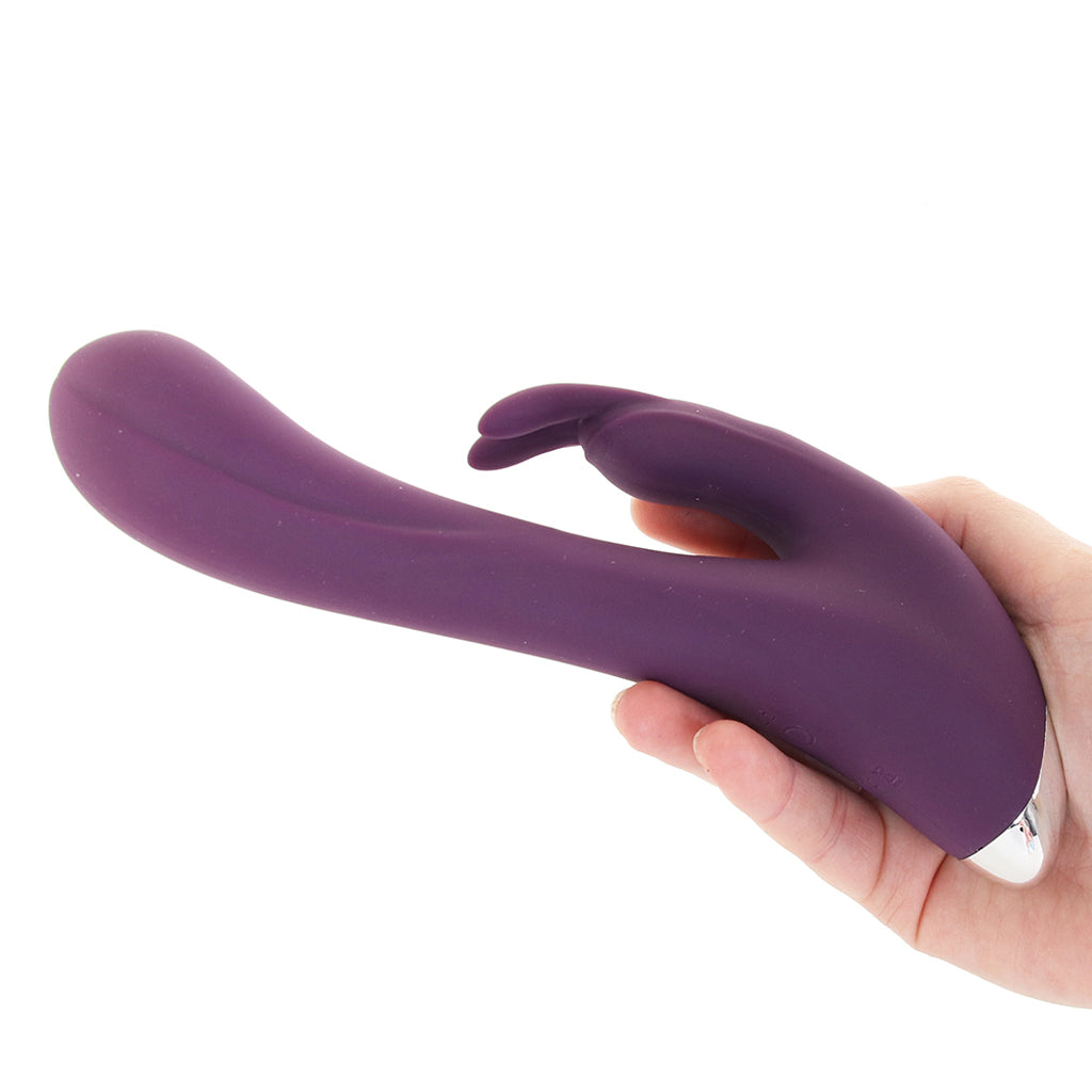 Shaped for full contact stimulation, this bunny's silky, sexily swollen purple shaft easily reaches your or your partner's inner sweet spots (g-spot definitely included) as it tirelessly buzzes and throbs. Meanwhile, a classic bunny stimulator below takes very good care of your, or their, clitoris and other external erogenous zones.