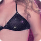 Need a little more sparkle in your lingerie drawer? Who doesn't!? Rock some rhinestone-studded drama with Radiance's Triangle Bikini Top. This glittery, semi-sheer halter bra is guaranteed to be the star of the show - plus, it's comfortable and adjustable.