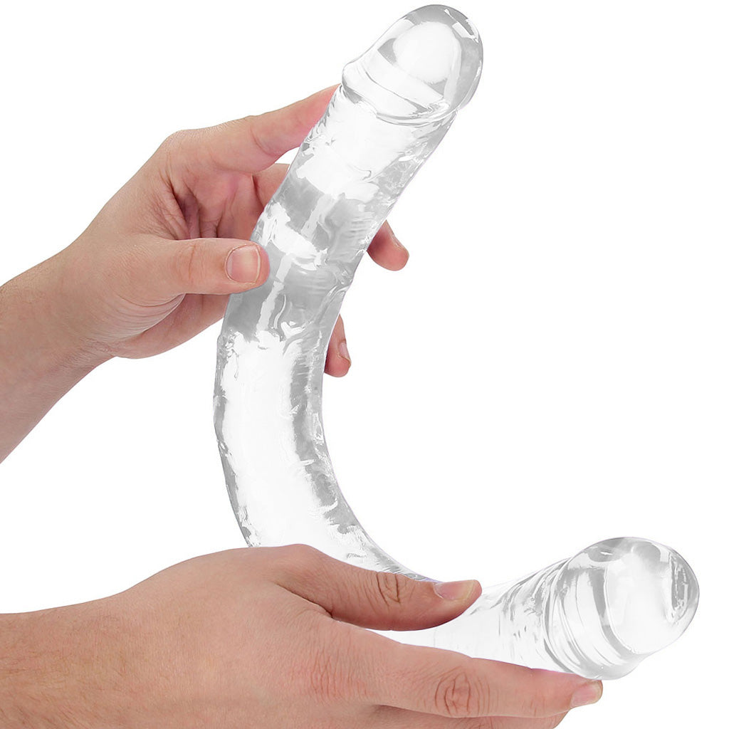 RealRock Crystal Jelly 18 Inch Double Dildo in Clear