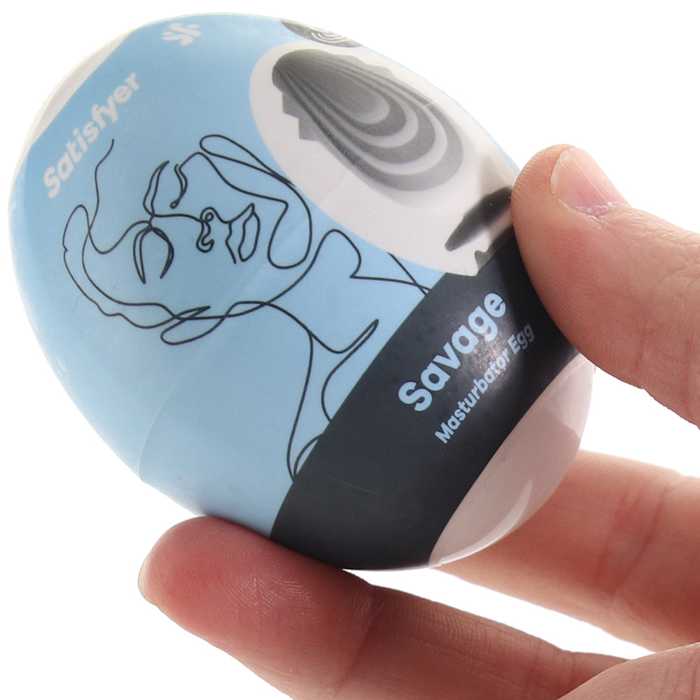 Tucked in a firm plastic case that won't give away its true identity, each Egg is tiny, but does it ever stretch! Inside, soft, flexible nubs and ribs massage your or their entire penis as you stroke. Once it gets wet with plain old water or saliva, your Riffle, Crunchy, Bubble, Fierce, Naughty or Savage turns into a slippery playground of texture, friction and tension. Closed-off around back, these pint-sized strokers neatly contain any orgasm aftermath.