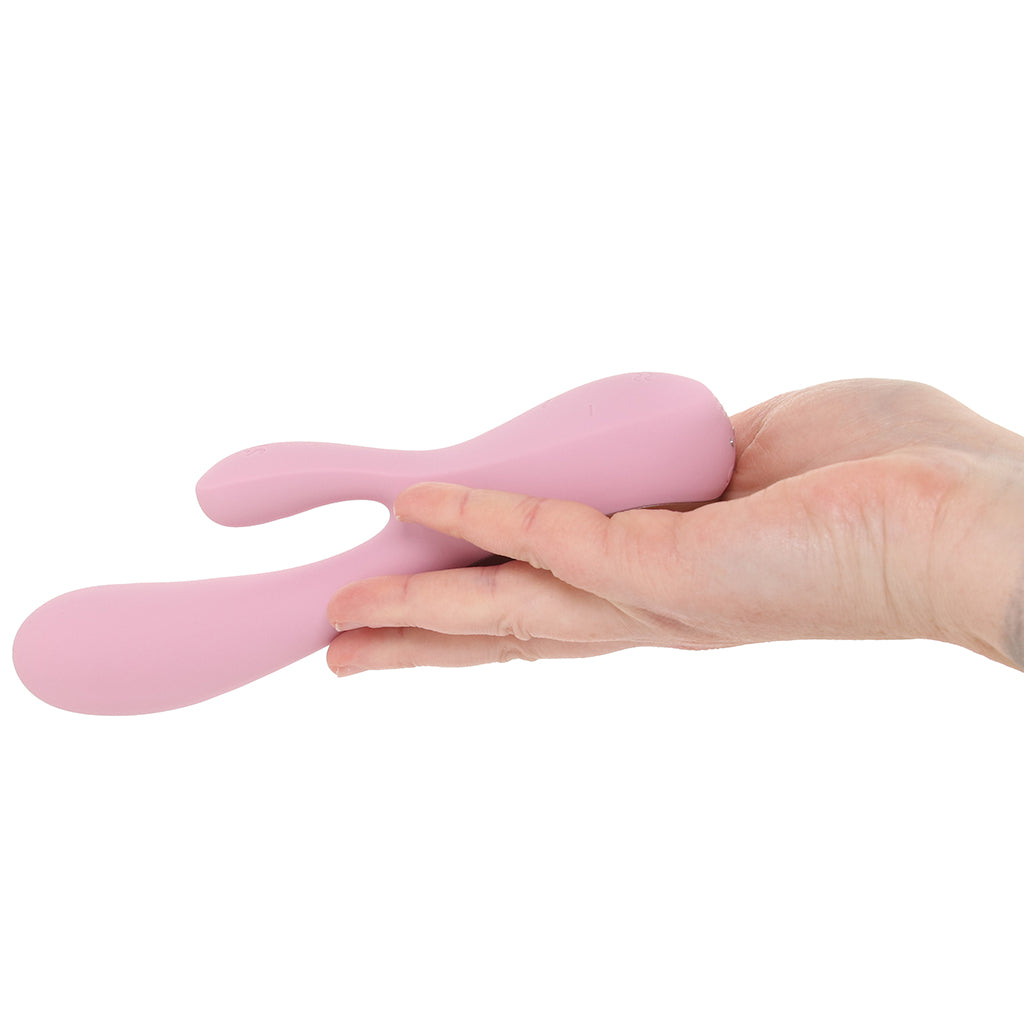 Featuring a classic double-the-pleasure shape that's been thrilling since day one, the Mono Flex boasts two vibrating points of contact (an innie and an outie), plus a super soft silicone texture. As per the name, and our intro, this vibe is very, very flexible. Both the smooth shaft and the equally smooth clitoral/external stimulator bend and move into perfect position as you play. You'll be able to adjust exactly as needed, which pretty much guarantees a fantastic finish.