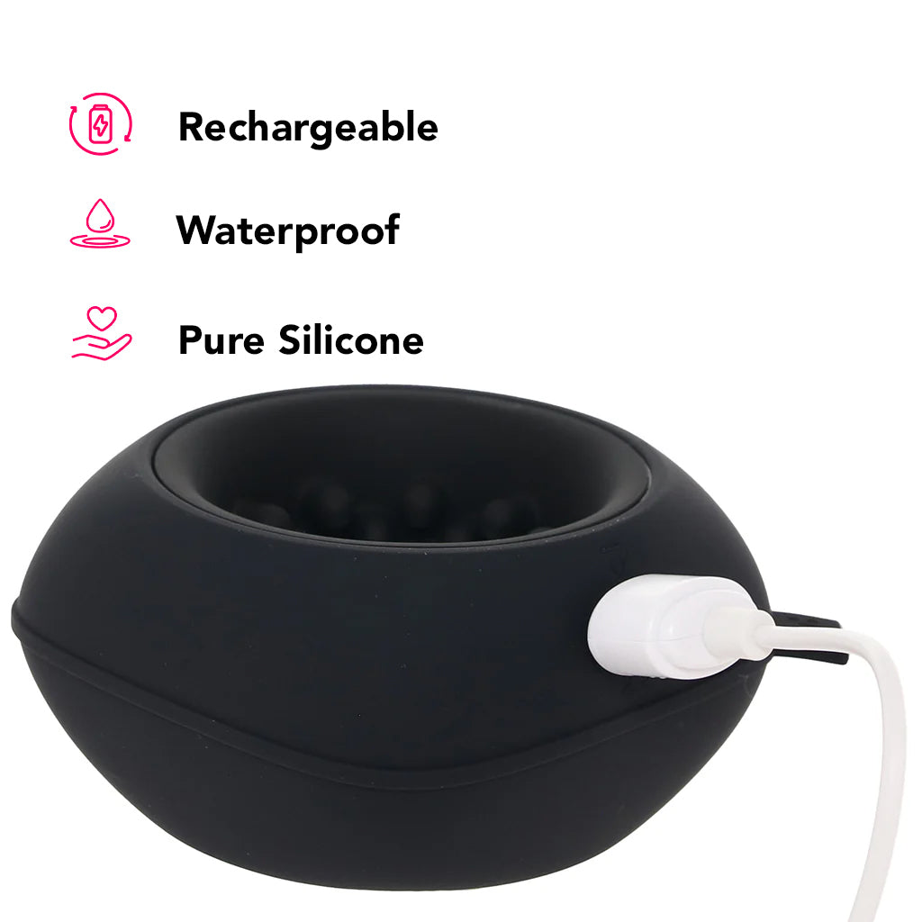 The Satisfyer Ring Stroker is made of body safe silicone, fully waterproof to IPX7 for shower play, USB rechargeable, easy to clean with mild soap or toy cleaner, and fully compatible with all your favorite water based lubes.