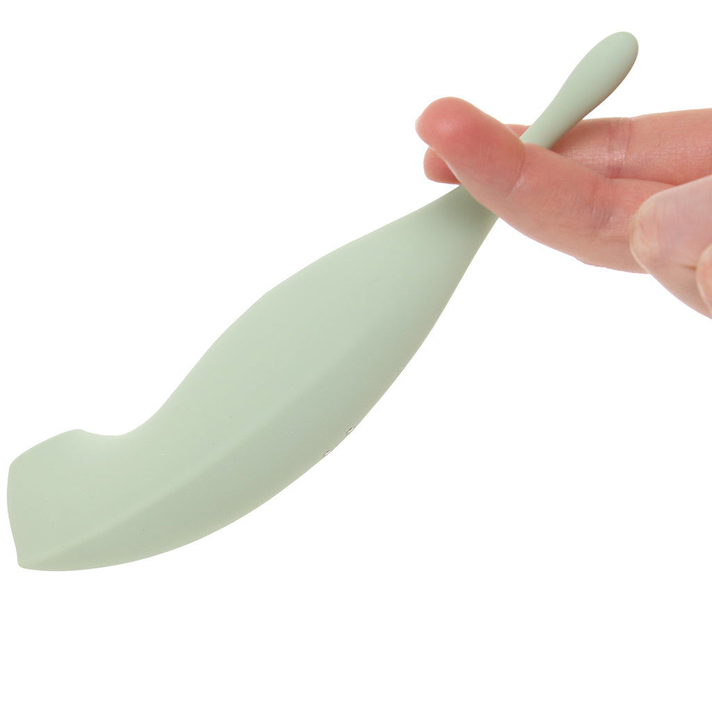 Once you start playing, you’ll get why this curvy cutie is a multitasking menace. The air-pulse side gives your clit and outer hot spots fluttery, touch-free attention in 11 intensities, from “aw, that’s cute” to “oh, HELLO.”