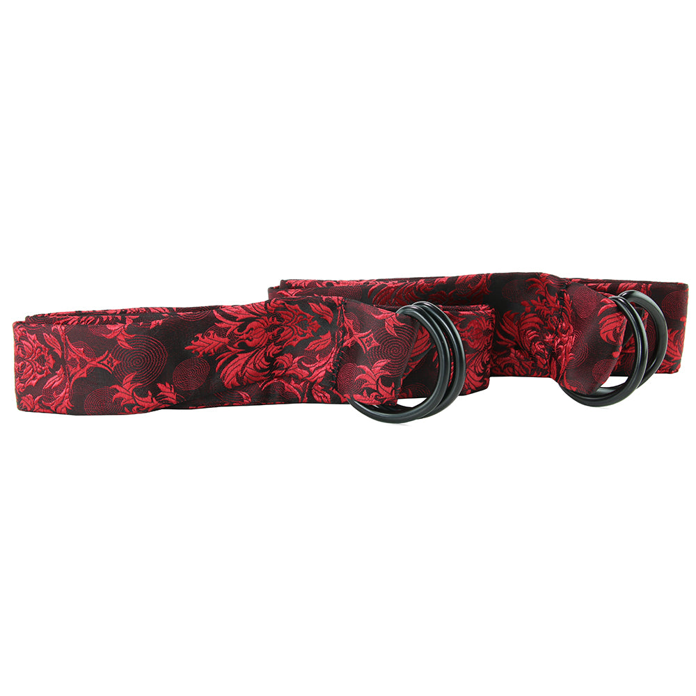 Two lovely red and black brocade fabric tie straps feature lots of length for wrapping and knotting around chair arms and legs as well as a simple cinch design to slip over wrists or ankles. Both 60" (152.5cm) ties are comfortably padded and securely double stitched.