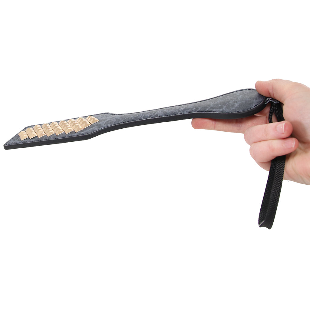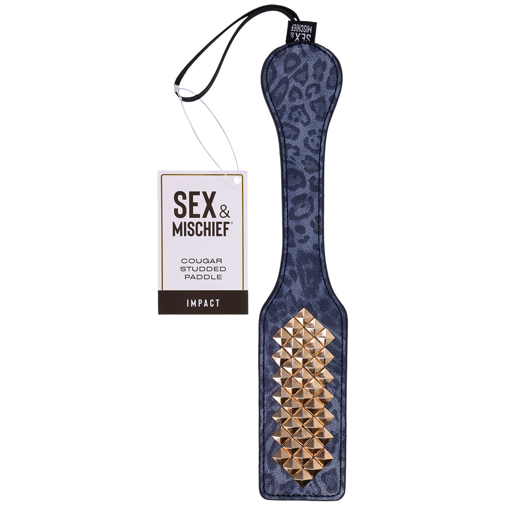 Proclaim your love of a good hard spanking (and studs!) with Sex & Mischief's Cougar Studded Paddle.