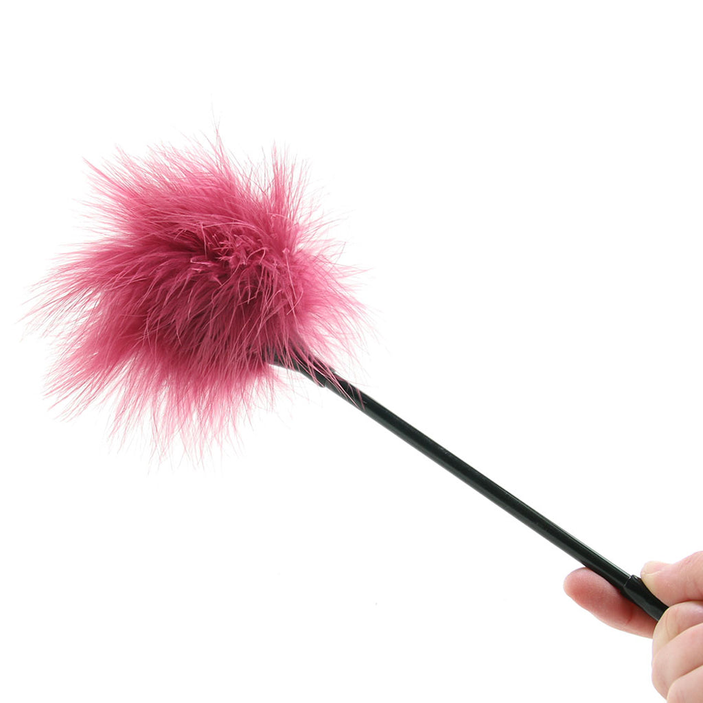 Inside you'll find three key pieces that you'll be able to mix, match or enjoy solo. First up is a soft little feather tickler perfect for dragging teasingly over nipples, bellies, butts and more. Before, after or during this very enjoyable activity, you can gently knot two 51.5"/130.8cm silky ribbon tie restraints over their wrists or ankles (and vice versa) and slip on a silky matching blindfold.