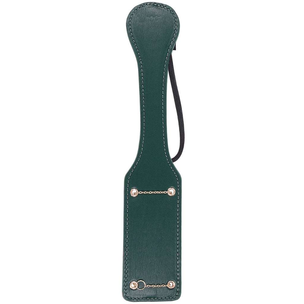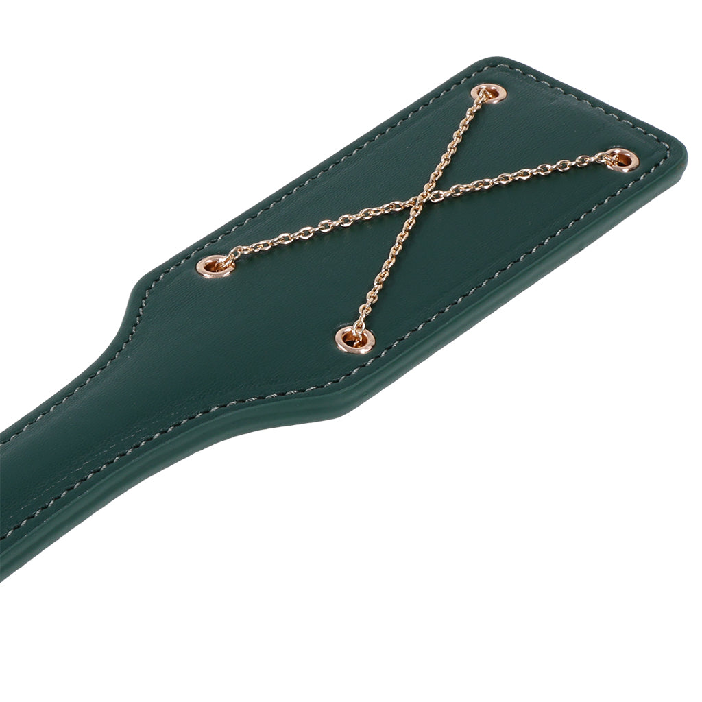 This Paddle is the perfect mix of beauty and bite. The gold chain set into the emerald faux leather creates a textured surface that can leave a soft little imprint with every well-earned swat. It lands with a deep, satisfying thud, plus just enough sting to remind you who’s running the scene.