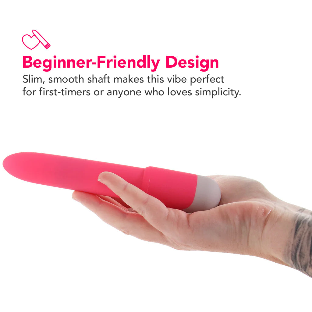 Its straight, round-tipped shaft is ideal for gliding over outer sweet spots like clits, nipples, or perineums, but it’s just as good for slipping inside when you’re in the mood for more. A single button at the base flips through 3 steady speeds, from teasing buzz to toe-curling power, all evenly spread through the smooth shaft.