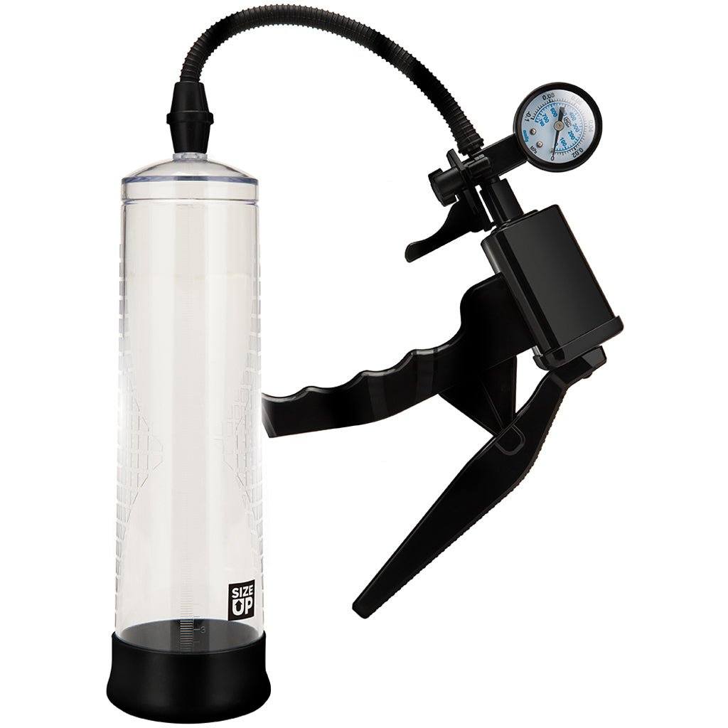 We all want to be our best selves, right? Some folks call that 'putting your best foot forward', but in the case of the FDA-approved Size Up Ergonomic Trigger Penis Pump, you'll actually be putting your best penis forward. That's right, this comfortable pump was designed to help you or your penis owning partner reach your/their, ahem, fullest potential AND give you lots of (PSI) information along the way!