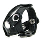 Made of a supple faux leather PVC, the larger strap wraps around the base of the penis, trapping blood where its needed to keep an impressive erection at its best. The center strap underneath separates the testicles, holding them apart and stretching subtly for a constricting feel that can help keep sensation under control, and can also greatly enhance orgasm when the moment finally comes (so to speak). Several possible snap positions make sizing easy and quick. Fits most.