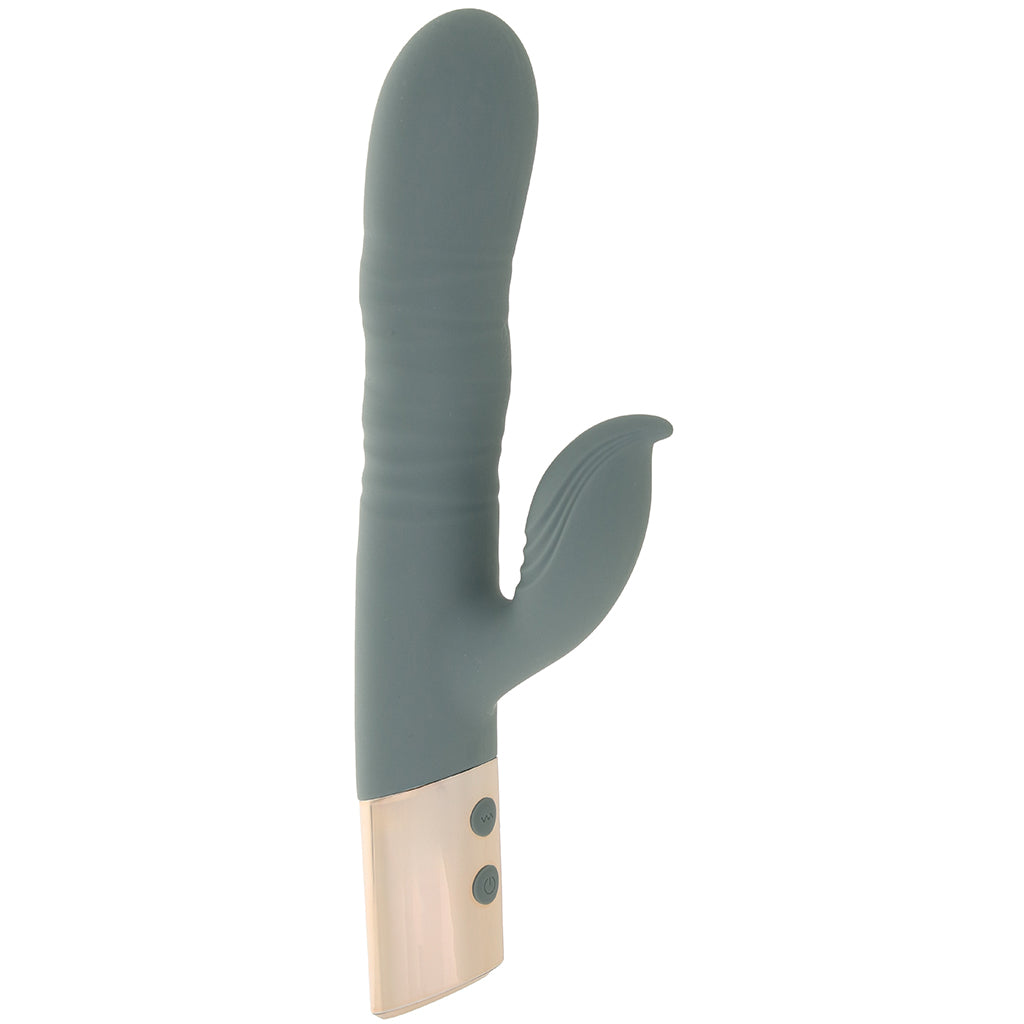 This curvy silicone rabbit vibe brings some very sexy choreography to the party. The shaft gently thrusts while a spiraling ridge along the body adds that signature shimmying motion as it moves. It’s a busy little combo that keeps the sensation lively from the first buzz to the grand finale.