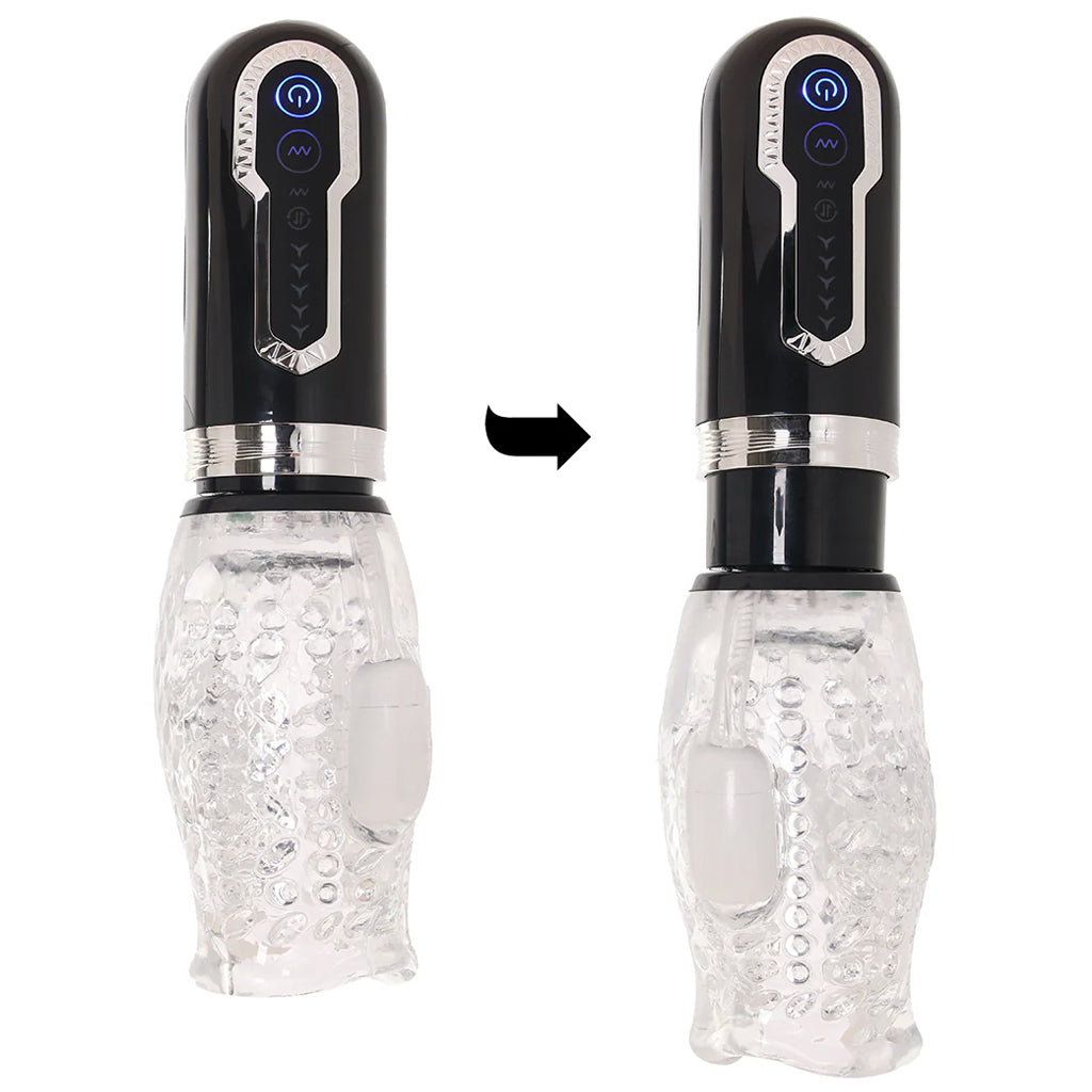 This legend-level masturbator is packing seven intense vibration modes powered by dual bullets plus five synchronized, fully automated spinning and thrusting options. That’s right—one full inch of glorious up-down motion. Vibe and thrust functions run independently, so you or your partner can fully customize the ride.