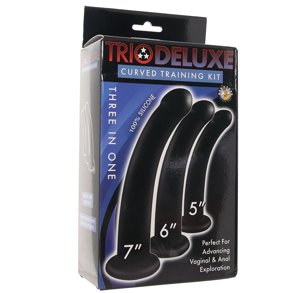 Your body. Your pace! The Trio Deluxe Curved Training Kit gives you three silky silicone dildos that grow with you as you explore what feels good.