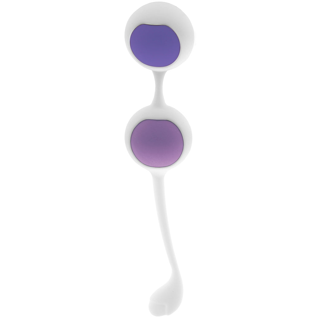 You'll find two silicone holders inside the box, a single and a double. Other than the 1 or 2 option, they're Identical in shape, sexy silkiness and handy retrieval cord. Six weights are included, two at .6oz/17g, two at 1.3oz/36.9g and 2 at 1.8oz/50g. You can mix and match the weights in the double version, use the single, or try the balls without the holder, when you get really confident. Options! Just keep in mind that the heavier the weight, the more intense the workout. Use a little water based lube for easy insertion.