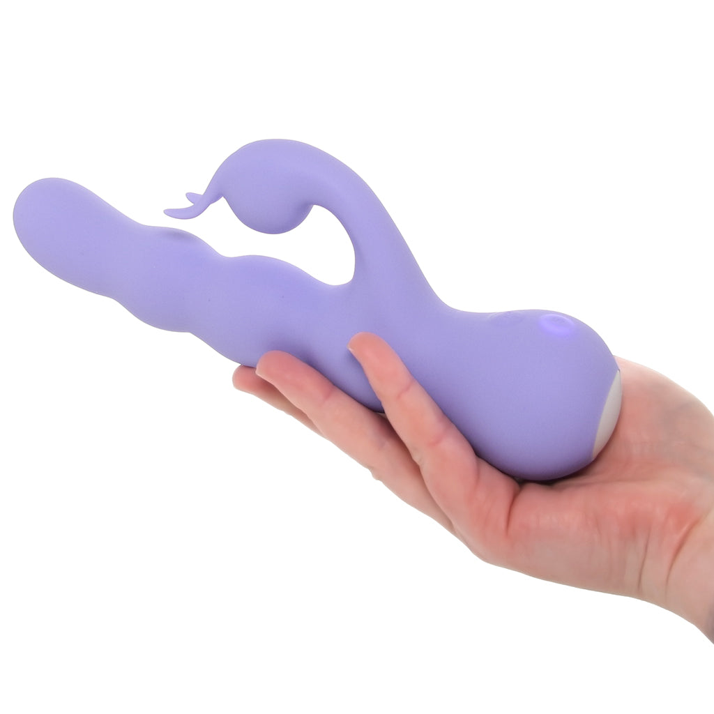 Made from body-safe silicone, Wiggly Bunny Rabbit is fully waterproof (IPX7), easy to clean, USB rechargeable, and safe with all your favorite water-based lubes.