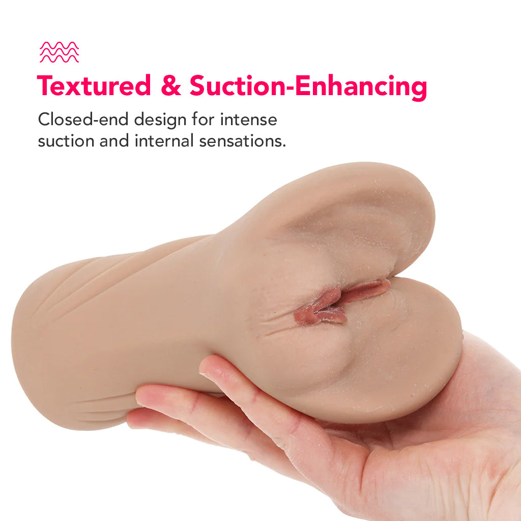 This ridiculously realistic stroker features separate pussy and butthole channels with tons of texture, a closed design for lots of suction potential, and a discreet, travel-ready tin.