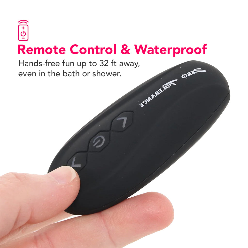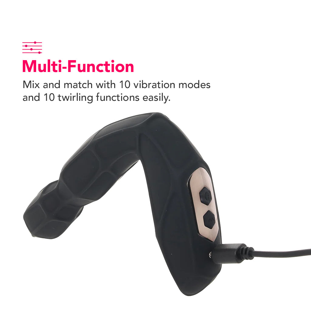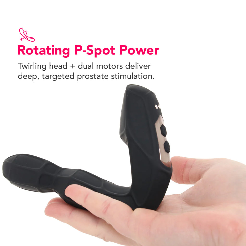 With 10 vibration modes and 10 twirling functions, you can mix and match sensations easily from the chunky base—or pass the wireless remote to a partner for hands-free fun up to 32 feet away.