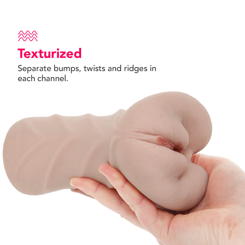This ridiculously realistic stroker features separate pussy and butthole channels with tons of texture, a closed design for lots of suction potential, and a discreet, travel-ready tin.
